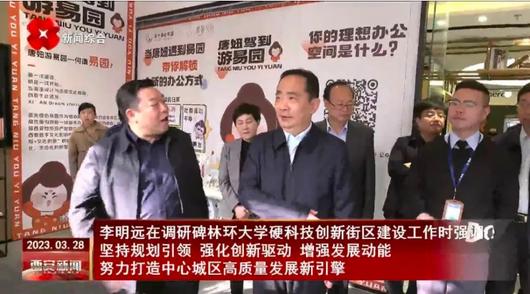 3月28日,西安市委副書記、市長李明遠前往碑林區(qū)調(diào)研環(huán)大學硬科技創(chuàng)新街區(qū)建設(shè)有關(guān)工作,參觀并詳細了解星光德必易園運營模式和現(xiàn)況。