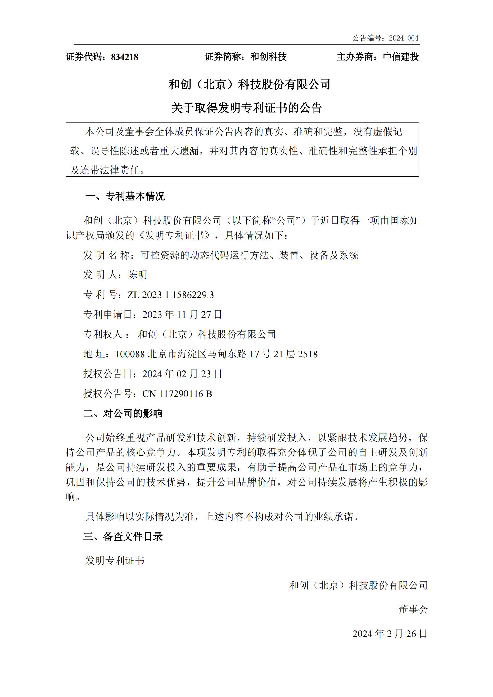 創(chuàng)新驅(qū)動,不斷突破!恭喜和創(chuàng)科技再添一項新的發(fā)明專利!