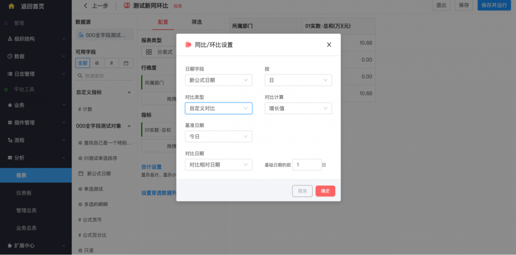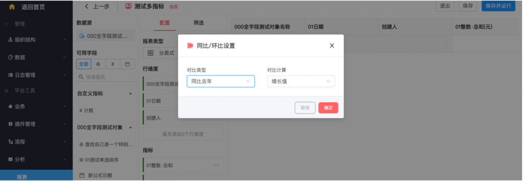 - 具有時間維度的同環(huán)比設(shè)置,可配置同比