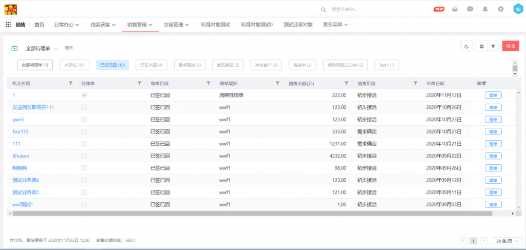理單應(yīng)用頁(yè)面邏輯調(diào)整,按理單階段顯示全部銷售機(jī)會(huì),且將待理單數(shù)據(jù)單獨(dú)顯示