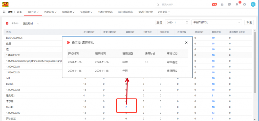 考勤統(tǒng)計(jì)中,請(qǐng)假天數(shù)改為請(qǐng)假次數(shù),并支持點(diǎn)擊查看審批單內(nèi)容;