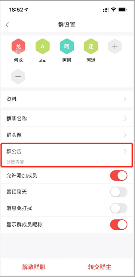 2)支持設(shè)置和發(fā)送群公告