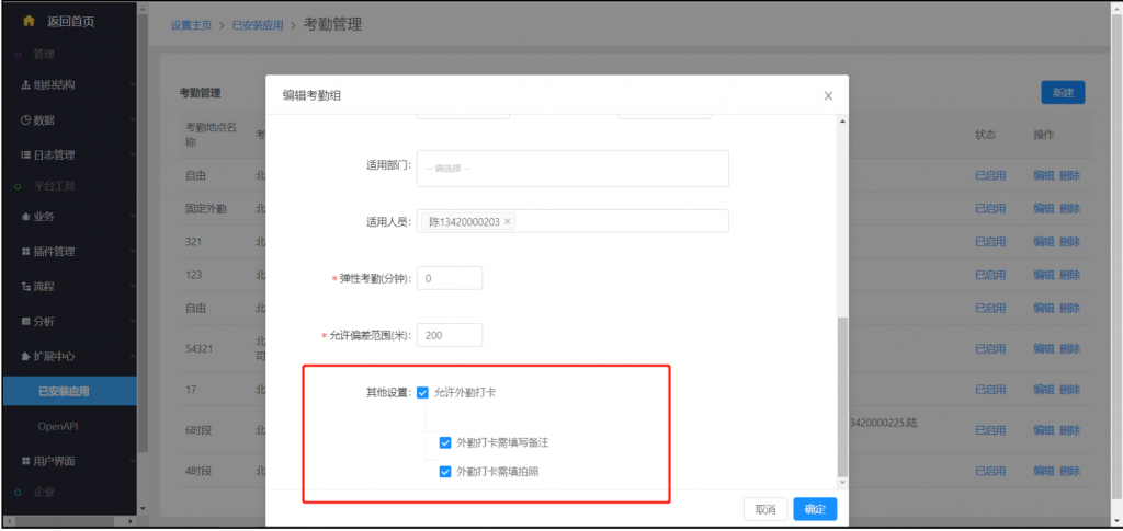 2)考勤是否支持外勤可配置
