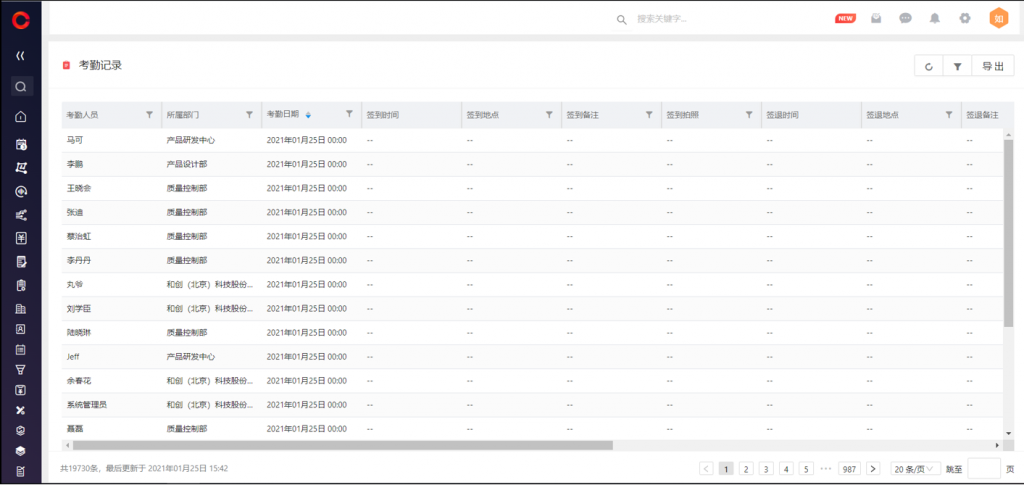 6)考勤打卡記錄列表支持表頭篩選和視圖功能