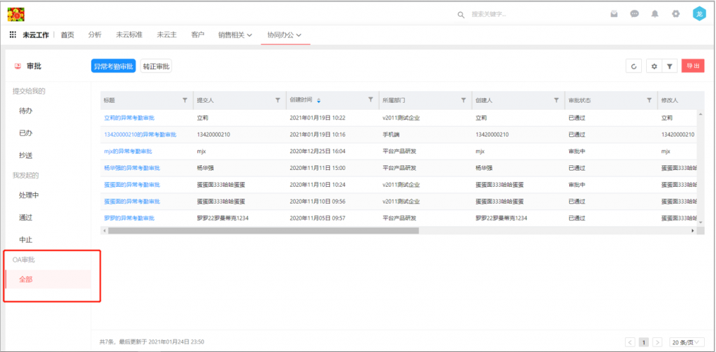 2)管理員可以在前臺(tái)的審批應(yīng)用中,查看該審批單的全部數(shù)據(jù),包括已審批結(jié)束和審批中的