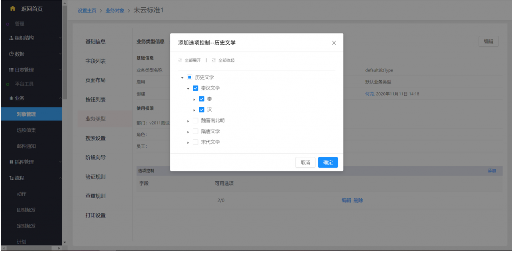 6)后臺(tái)配置的篩選條件中,員工和部門支持“不包括”條件,如審批流的分支條件