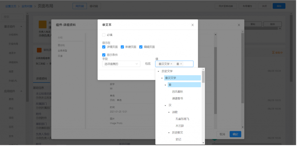 1)選項(xiàng)值集的適用性提升,如顯示條件,篩選支持多選等