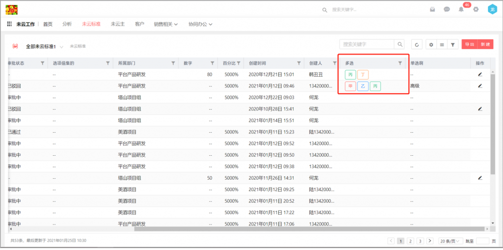 2)多選字段的顏色展示