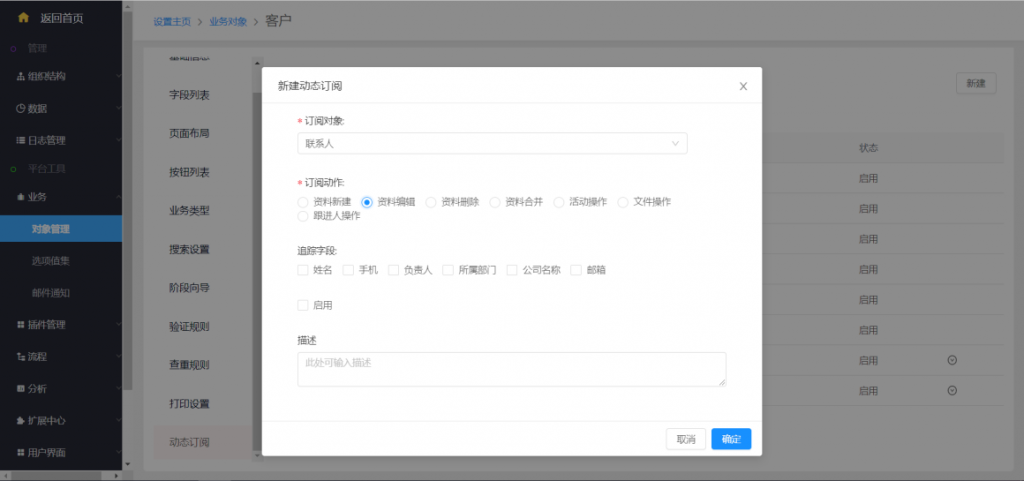 系統(tǒng)設(shè)置——業(yè)務(wù)——對(duì)象管理——?jiǎng)討B(tài)訂閱——新建