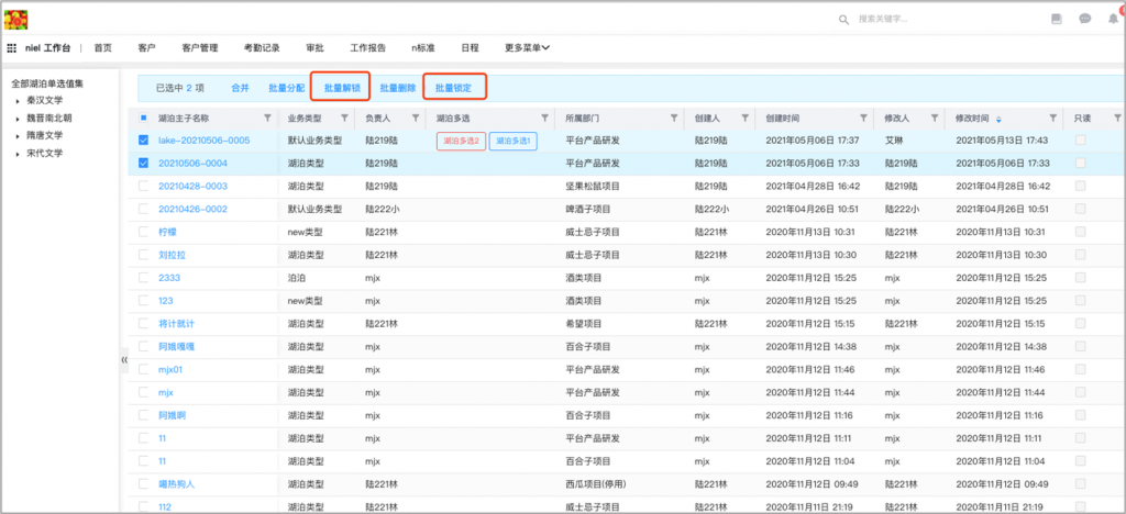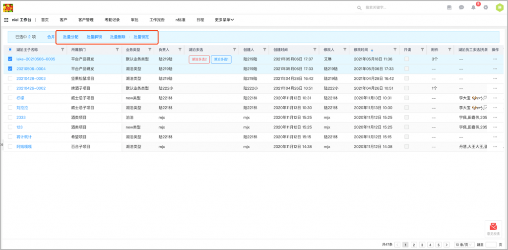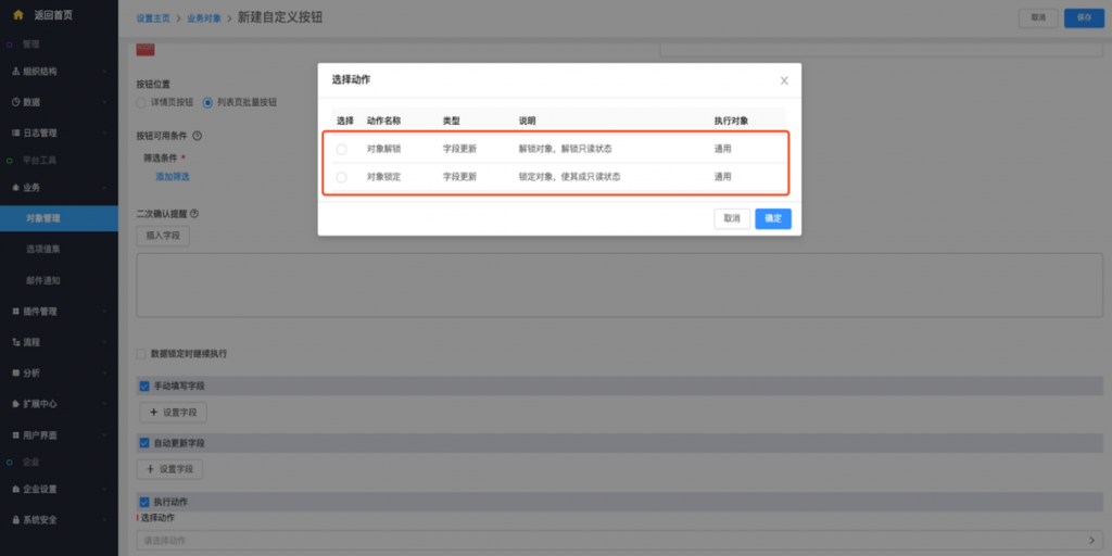- 列表頁(yè)批量按鈕支持執(zhí)行鎖定和解鎖動(dòng)作:列表頁(yè)批量按鈕支持執(zhí)行動(dòng)作,可以執(zhí)行鎖定和解鎖動(dòng)作,在前端實(shí)現(xiàn)批量鎖定和批量解鎖