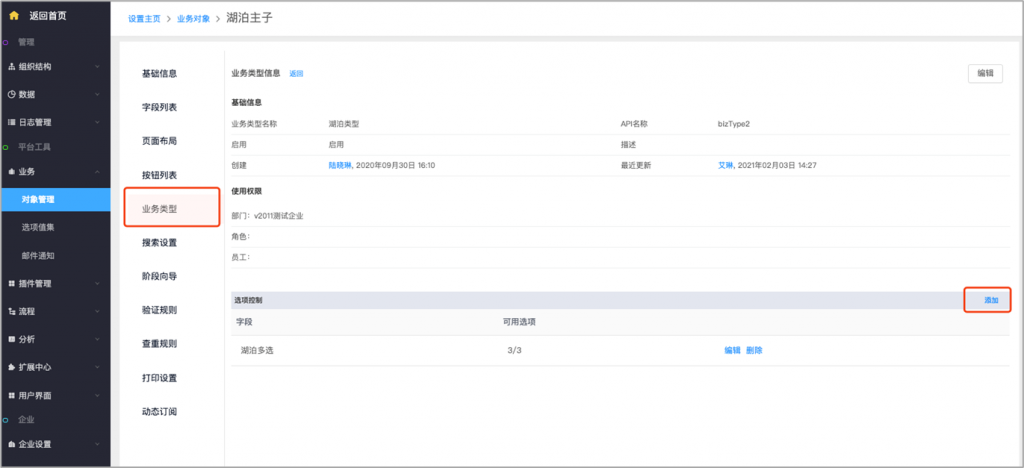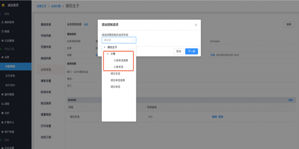 - 主對(duì)象業(yè)務(wù)類型控制子對(duì)象:主對(duì)象的業(yè)務(wù)類型可以控制子對(duì)象的單選及多選字段