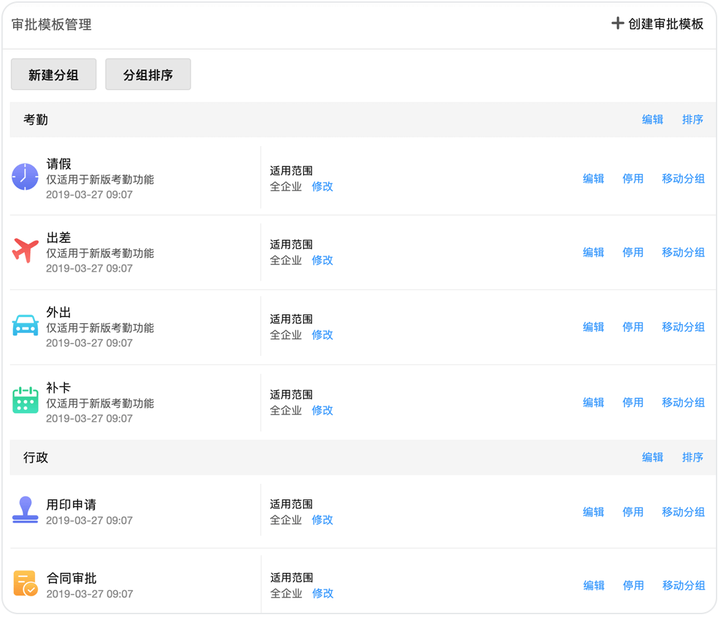 企業(yè)可以通過自定義審批類別和模板來規(guī)范審批的格式,并為所有審批進行分組、排序,讓審批管理和使用都更加便捷。