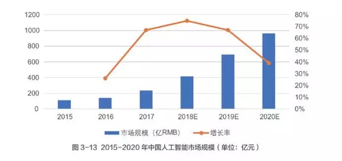 3)市場規(guī)模:中國人工智能市場增長迅速,計算機視覺市場規(guī)模最大。2017年中國人工智能市場規(guī)模達到237億元(計算機視覺占比34.9%),同比增長67%,預計2018年增速將達到75%。