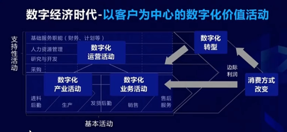 數(shù)字時(shí)代的來臨帶來的最大變化是什么?支持性活動(dòng)可以產(chǎn)生價(jià)值,基本活動(dòng)也可以產(chǎn)生價(jià)值,整個(gè)上下游還是可以產(chǎn)生價(jià)值。最后發(fā)現(xiàn)我們產(chǎn)生價(jià)值的空間變多了。原來只在一條鏈上,而且這條鏈上只有基本活動(dòng)產(chǎn)生價(jià)值,其他只是改變成本和價(jià)值。可是數(shù)字技術(shù)來了之后,所有的環(huán)節(jié)都可以產(chǎn)生價(jià)值,無論是支持活動(dòng)、基本活動(dòng),還是上下游的產(chǎn)業(yè)活動(dòng)。我們告訴各位,這是源于消費(fèi)方式的改變。