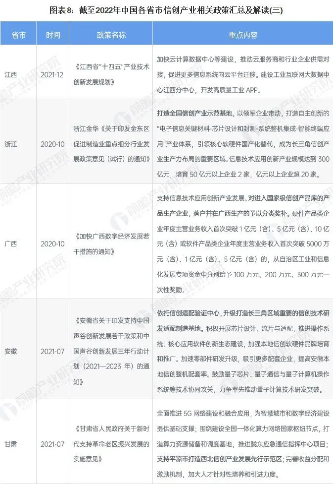 在地方產(chǎn)業(yè)政策的推動下,各地的集成電路、云計算、應(yīng)用軟件、信息安全等領(lǐng)域有望大面積使用國產(chǎn)品牌。國產(chǎn)品牌技術(shù)的升級也有利于促進我國信創(chuàng)產(chǎn)業(yè)的健康持續(xù)發(fā)展。