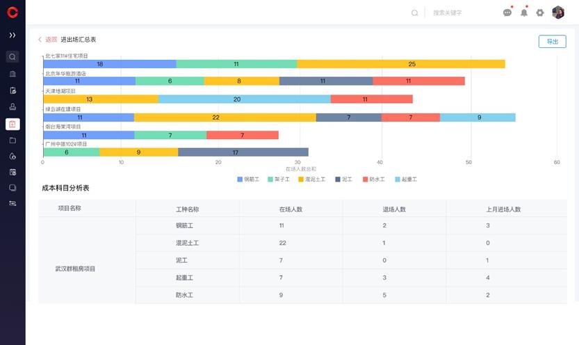 勞務(wù)成本管理:相關(guān)負(fù)責(zé)人可在系統(tǒng)中錄入勞務(wù)預(yù)算數(shù)據(jù)。施工過(guò)程中,通過(guò)軟件及時(shí)上報(bào)實(shí)際勞務(wù)成本,將預(yù)算和實(shí)際成本進(jìn)行對(duì)比,發(fā)生超出預(yù)算風(fēng)險(xiǎn)時(shí),系統(tǒng)可以自動(dòng)觸發(fā)預(yù)警提醒。管理層可以通過(guò)紅圈軟件實(shí)時(shí)了解單項(xiàng)目的實(shí)際勞務(wù)成本,各項(xiàng)支出明細(xì)可查,為結(jié)算提供依據(jù)。