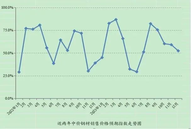 12月1日,據(jù)國家發(fā)改委價格監(jiān)測中心網(wǎng)站消息,調(diào)查顯示12月份鋼材市場預(yù)期仍審慎樂觀。據(jù)對全國重要鋼材批發(fā)市場調(diào)查,12月份鋼材批發(fā)市場銷售價格預(yù)期指數(shù)、購進(jìn)價格預(yù)期指數(shù)分別為52.4%、56.7%,比上月分別下降6.7和3.2個百分點(diǎn),均保持在50%分界線之上,反映出市場對12月份鋼材價格繼續(xù)保持審慎樂觀,看漲預(yù)期略有減弱。