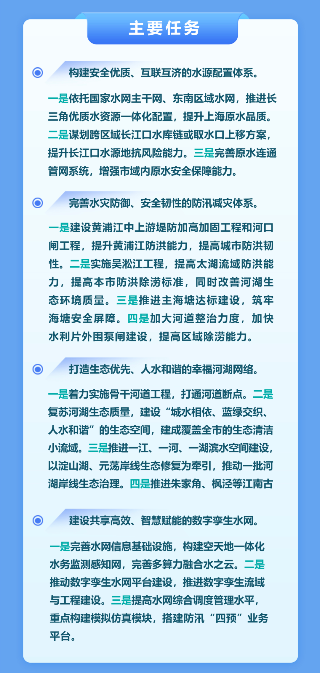 四是建設(shè)共享高效、智慧賦能的數(shù)字孿生水網(wǎng),包括完善水網(wǎng)信息基礎(chǔ)設(shè)施,推動(dòng)數(shù)字孿生水網(wǎng)平臺建設(shè),提高水網(wǎng)綜合調(diào)度管理水平等。