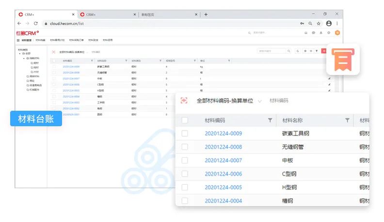 紅圈材料管理模擬頁(yè)面