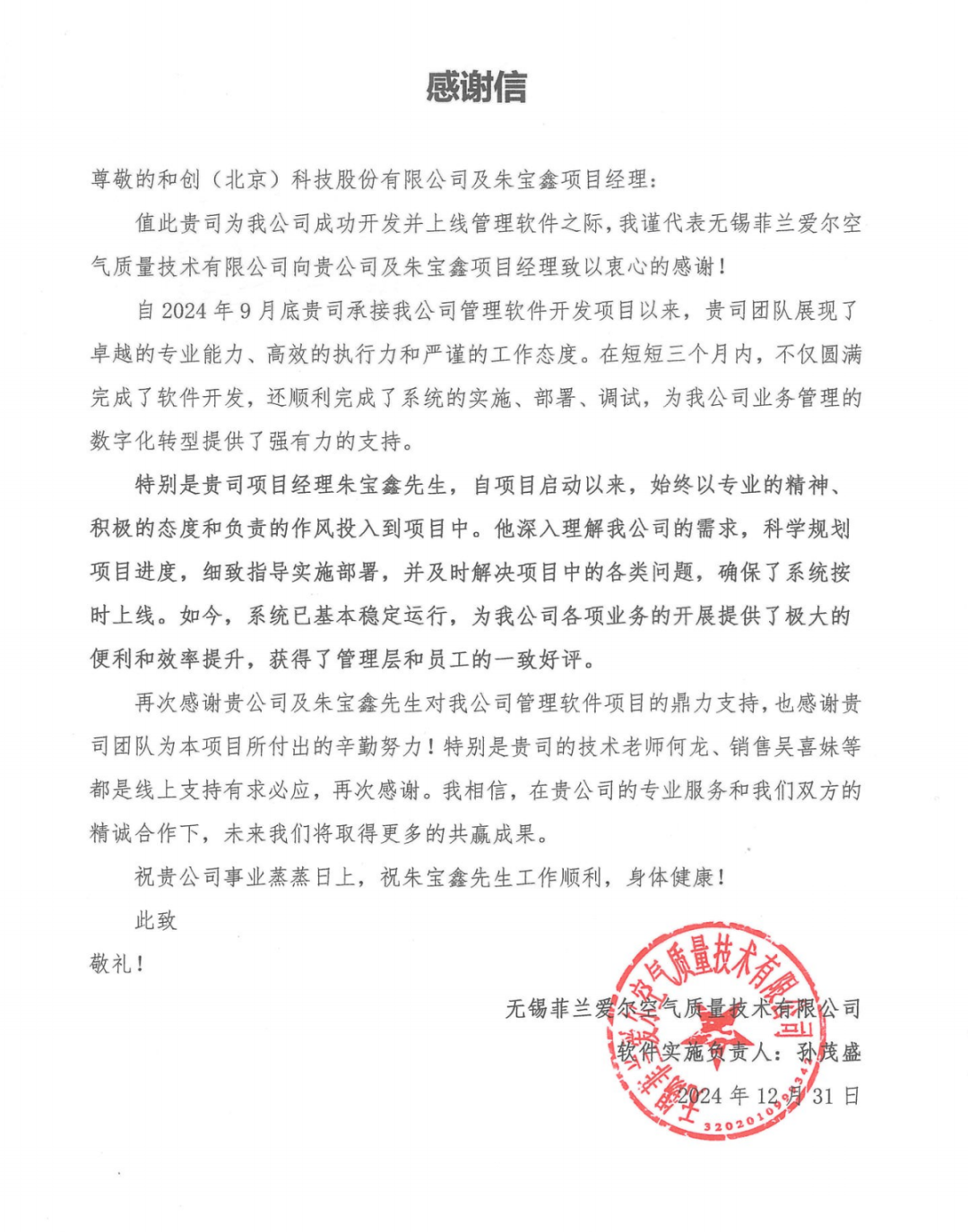 在紅圈系統(tǒng)上線之后,菲蘭高度認可紅圈團隊的工作,并發(fā)來了感謝信!