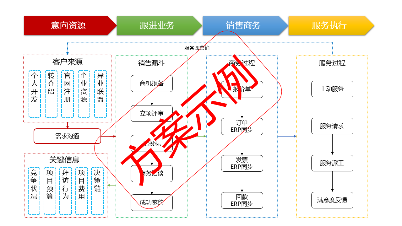 CRM以項(xiàng)目為主線,貫穿整個(gè)項(xiàng)目生命周期,協(xié)同管理不同階段的相關(guān)業(yè)務(wù)。將為不同角色提供特定的信息共享和評(píng)審功能,對(duì)控制點(diǎn)進(jìn)行管理:項(xiàng)目階段按統(tǒng)一的規(guī)范設(shè)置,便于統(tǒng)計(jì)分析;項(xiàng)目各階段可以設(shè)置里程碑及提醒與報(bào)警功能(可向預(yù)定的管理者報(bào)警);在項(xiàng)目過(guò)程中,能夠管理合作伙伴與競(jìng)爭(zhēng)者、項(xiàng)目文檔、項(xiàng)目團(tuán)隊(duì)組建(包括權(quán)限管理)、項(xiàng)目計(jì)劃。